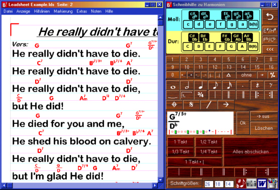 Zur Unterscheidung heißt das rechte Fenster "Harmonie"- und das linke "Leadsheet"-Fenster.
