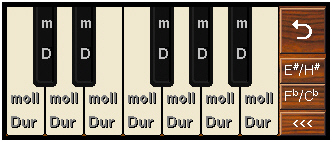 Mit den Schaltern "E#/H#" und "Fb/Cb" können Tonarten wie H als Cb oder F als E# dargestellt werden. (Wird normalerweise nie benutzt.)