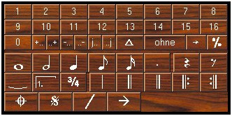 | Lehrzeichen | Ein Schritt vorwärts in der Position für Harmoniefolgen. Falls ein Akkord erstellt wurde, wird dieser in die Reihe eingetragen. Falls der Positionszeiger auf einem Taktstrich steht, wird ein Taktstrich eingetragen. |